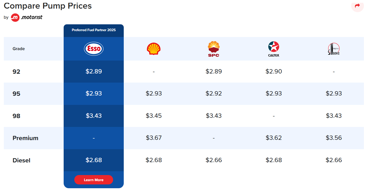 Harga yang tinggi ini bermakna anda mungkin ingin memasuki Singapura dengan tangki minyak penuh dan memastikan perjalanan anda pendek untuk mengelakkan keperluan untuk mengisi minyak di Kota Singa; sesuatu yang sepenuhnya mungkin di negara sekecil itu.