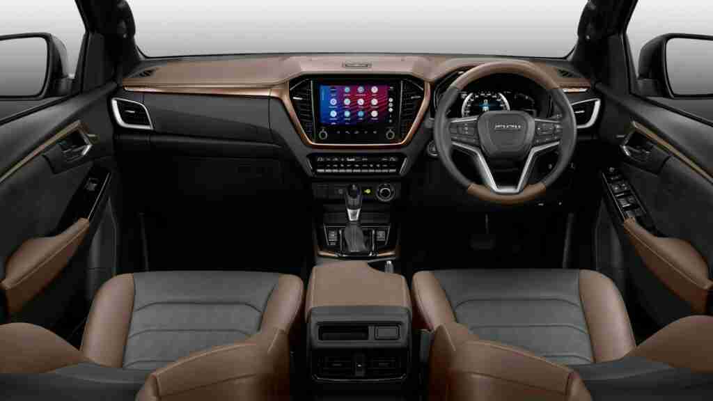 Di dalam, dashboard mengekalkan penampilan yang akrab tetapi menawarkan pilihan trim baru dan teknologi yang ditingkatkan. Sistem hiburan termasuk skrin sentuh 9-inci dengan butang sensitif sentuhan dan pintasan, bersama-sama dengan knob fizikal untuk kawalan volume dan menu. Isuzu telah menambahkan port USB-C untuk penumpang depan dan belakang, serta kunci baru dengan fungsi hidupkan enjin jarak jauh.