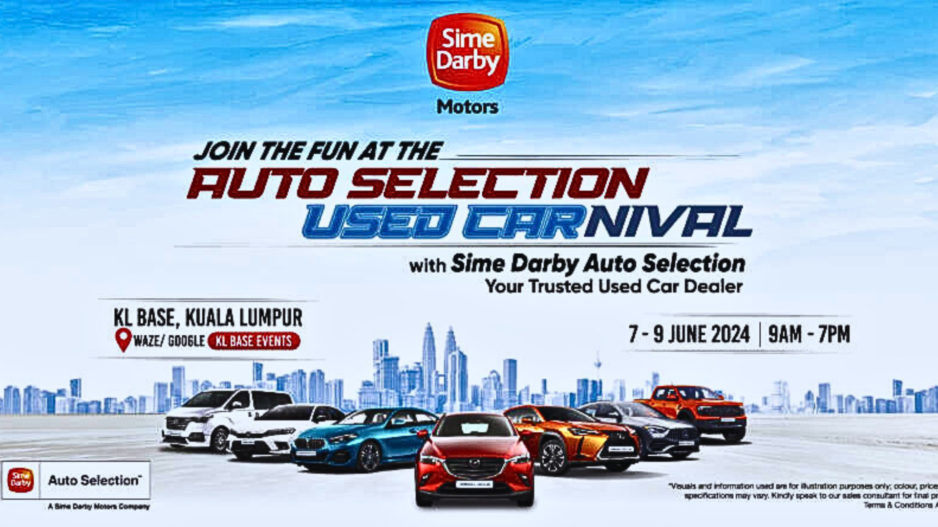Inilah peluang anda untuk membawa pulang kereta impian anda pada harga yang menakjubkan. Datanglah ke KL Base di Kuala Lumpur hujung minggu ini (7 hingga 9 Jun, dari 9 pagi hingga 7 malam) dan alami sendiri Auto Selection Used Carnival dan Sime Darby Motors Pre-owned EV Fair.