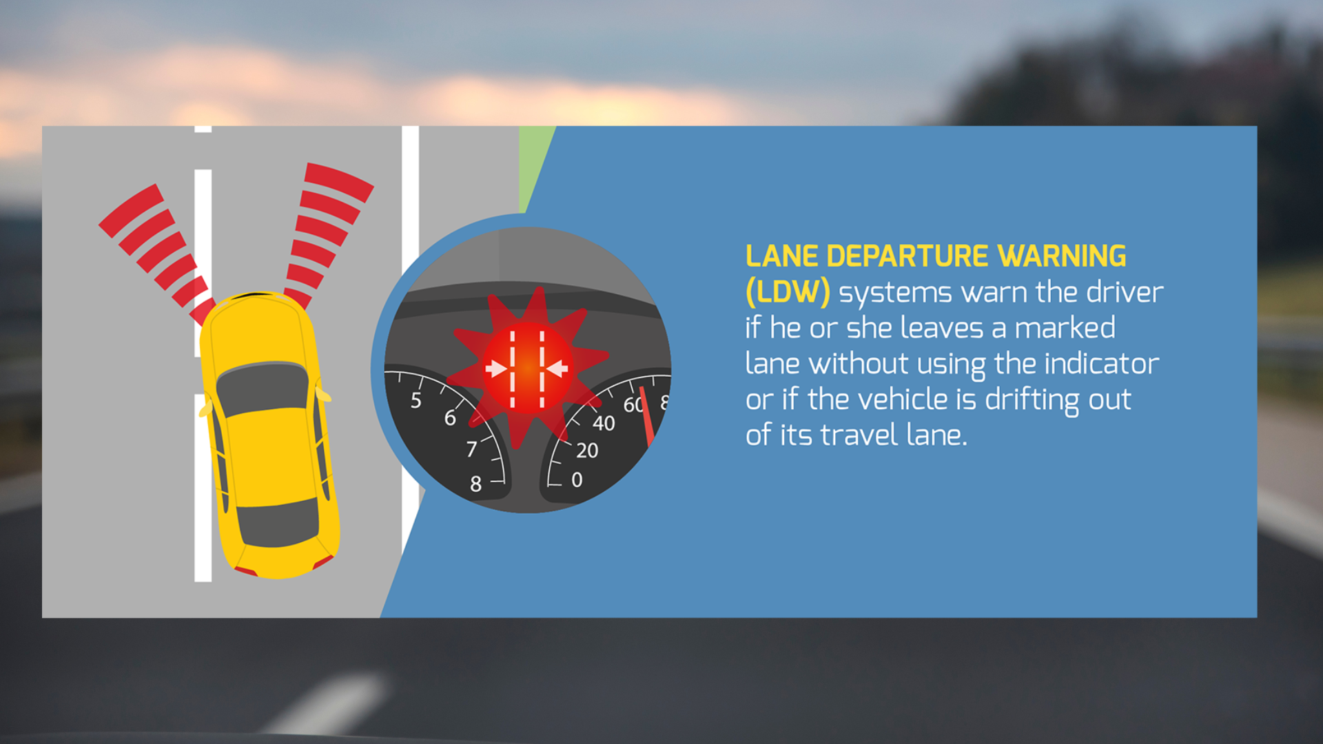 - Penggera Keluar Dari Laluan (LDW): LDW menggunakan kamera untuk memantau kedudukan anda di jalan. Jika anda secara tidak sengaja keluar dari laluan tanpa memberi isyarat, sistem ini akan memberi amaran visual atau lisan kepada anda.