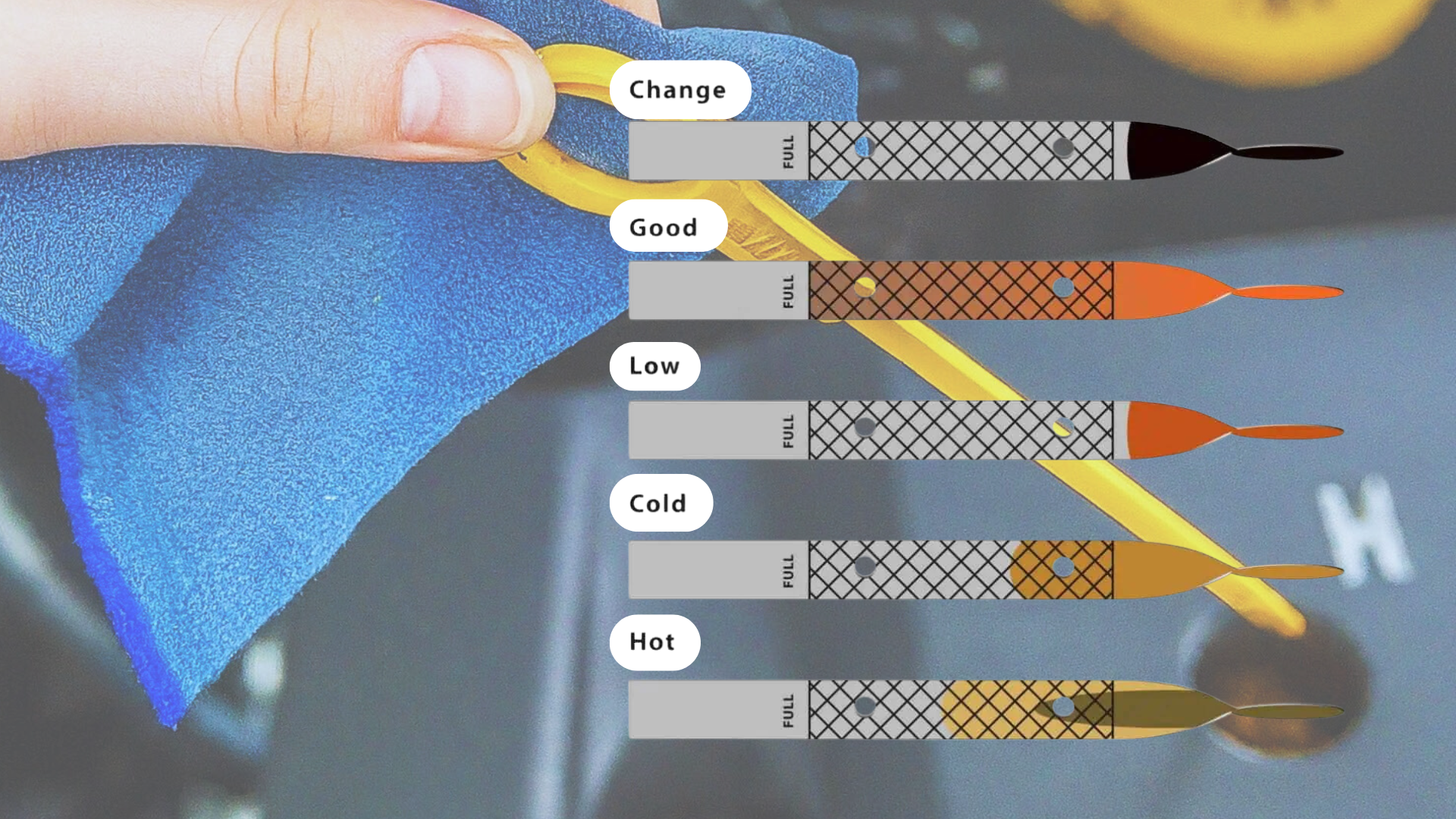 Perhatikan warna minyak enjin: Minyak enjin yang berwarna hitam atau coklat gelap mungkin menunjukkan keperluan untuk penukaran minyak. Minyak enjin yang bersih jernih atau berwarna amber biasanya okay.