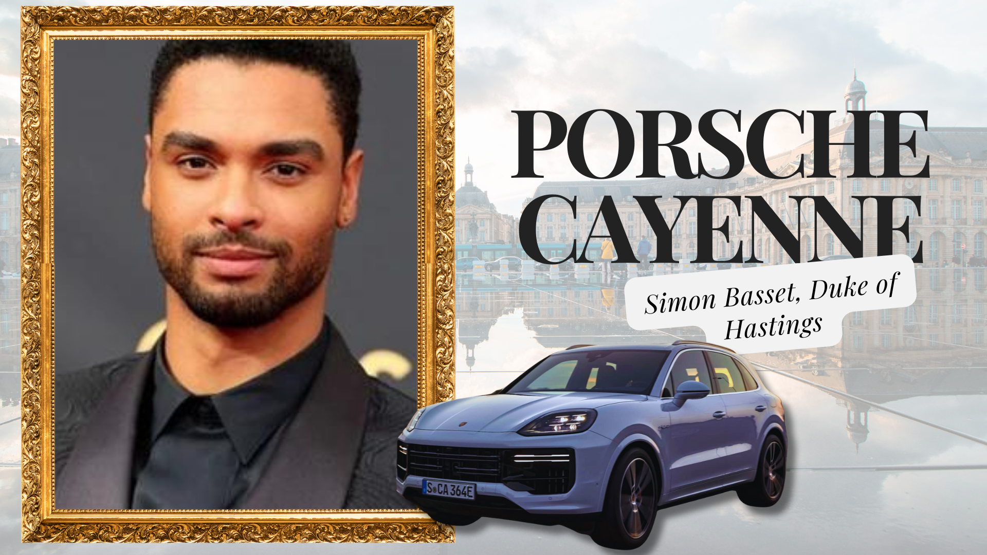 Regé-Jean Page (Simon Basset, Duke of Hastings): The Duke memancarkan aura keintiman yang mendalam dan daya tarikan yang tidak dapat dinafikan. Padanan yang sempurna untuknya adalah Porsche Cayenne. Berkuasa, mewah, dan dengan sentuhan misteri, Cayenne mencerminkan persona kompleks Duke.