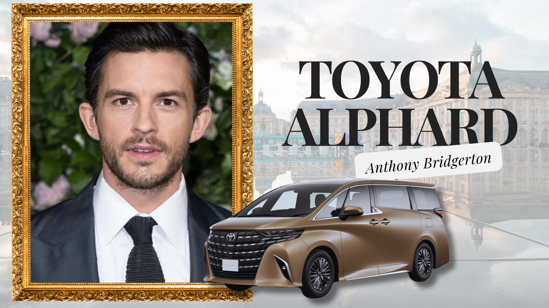 Jonathan Bailey (Anthony Bridgerton): Abang sulung Bridgerton ini bertanggungjawab, berwibawa, dan sedikit terlalu melindungi. Toyota Alphard adalah kenderaan ideal baginya. Luas, selesa, dan memiliki kehadiran yang memerintah, Alphard mencerminkan peranan Anthony sebagai ketua keluarga.