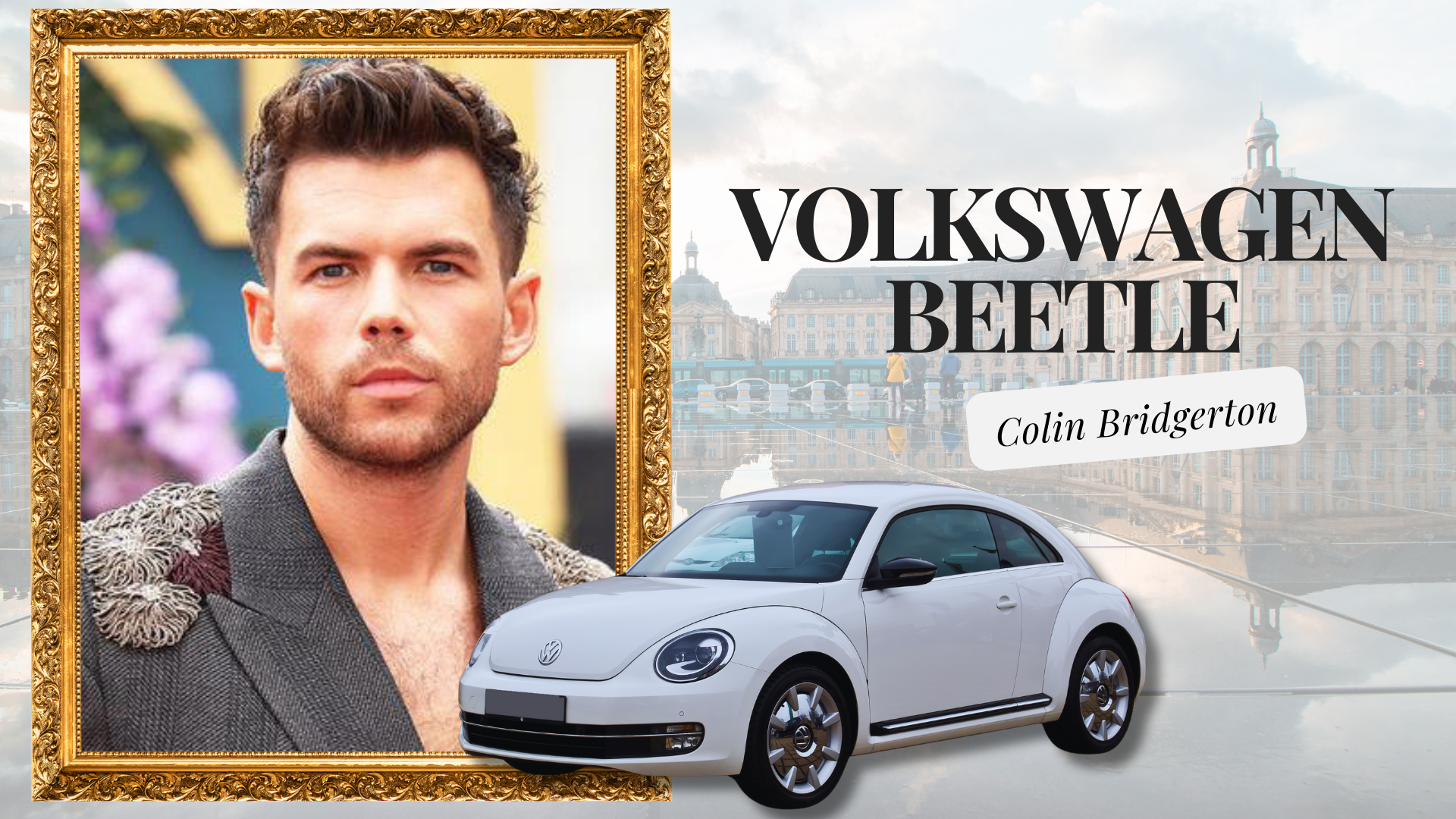 Luke Newton (Colin Bridgerton): Colin adalah abang Bridgerton yang menawan tetapi sedikit tidak berpengetahuan. Volkswagen Beetle sesuai untuknya. Klasik, unik, dan penuh potensi, Beetle mencerminkan sifat santai Colin dan ruang untuk berkembang.